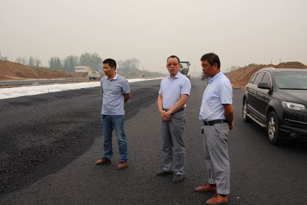 9月22日上午,公司總經(jīng)理孔德穩(wěn)在工程部、辦公室等人員的陪同下,驅(qū)車分別來到信陽職業(yè)技術(shù)學(xué)院、羊山新區(qū)工業(yè)大道,檢查指導(dǎo)路面施工情況。在職業(yè)技術(shù)學(xué)院,孔總與項目部人員詳細(xì)了解三個標(biāo)段的施工進(jìn)展情況,目前存在的困難和問題。當(dāng)項目部陳志明經(jīng)理介紹到二、三標(biāo)路段水泥穩(wěn)定碎石已做完,現(xiàn)正抓緊進(jìn)行涵管鋪設(shè),后面進(jìn)入三標(biāo)人行道建設(shè)時,孔總對項目部的工作給予肯定。隨后,孔總一行又來到羊山新區(qū)家居產(chǎn)業(yè)小鎮(zhèn)工業(yè)大道,檢查瀝青路面施工情況。油面分公司漆昌輝經(jīng)理、王有志經(jīng)理分別向孔總介紹了近期工業(yè)大道油面鋪設(shè)進(jìn)度,并表示在天氣陰雨不斷的情況下,油面分公司組織廣大員工起早貪黑,加班加點,不怕疲勞,連續(xù)作戰(zhàn),搶天氣、抓進(jìn)度,力爭在中秋節(jié)前完工??卓倢τ兔娣止具@種敢打敢拼的精神給予高度贊揚。圖為孔總分別在職院、工業(yè)大道項目工地檢查時的情景。