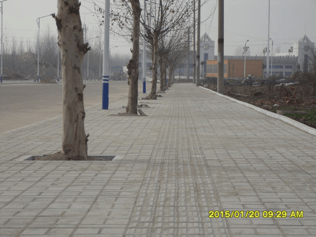 我公司組織施工的“羅山縣產(chǎn)業(yè)集聚區(qū)部分主干道人行道道路硬化一標(biāo)段”經(jīng)過90天的緊張施工,現(xiàn)已全面完工。該標(biāo)段包括羅山縣產(chǎn)業(yè)集聚區(qū)站前西道(局部)和工業(yè)大道(局部)人行道建設(shè)工程。其中站前西道人行道建設(shè)工程施工長(zhǎng)度為602.4M;工業(yè)大道人行道建設(shè)工程施工長(zhǎng)度為630.5M,兩路段工程寬度皆為5M,結(jié)構(gòu)層從下至 上依次為:8CM碎石基層、10CM砼墊層、3CM水泥砂漿結(jié)合層、6CM人行道磚。該工程正在準(zhǔn)備驗(yàn)收。